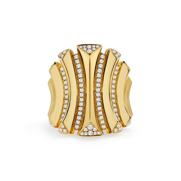 NZD $8,836The Empire Ring stands as a bold testament to architectural elegance and timeless grandeur. Sculpted in 18 carats gold, its flowing lines rise and curve… -