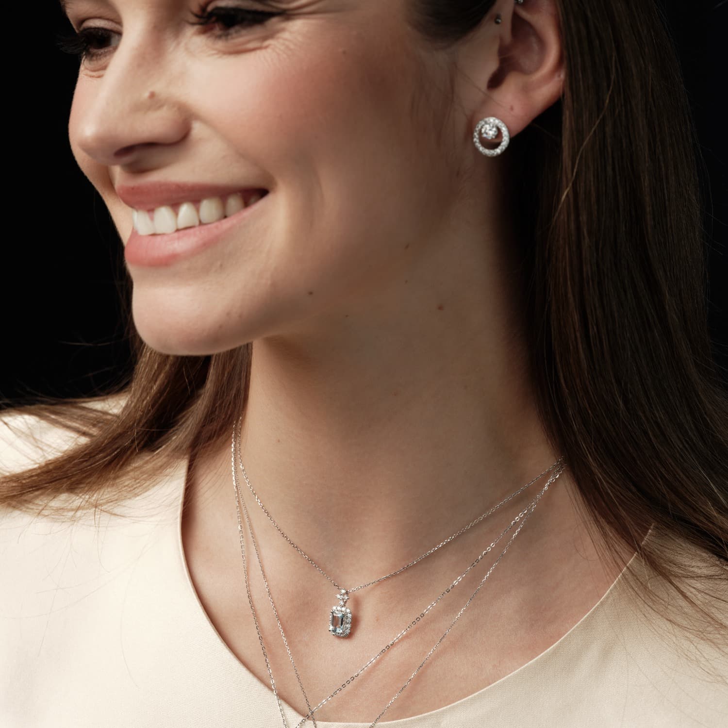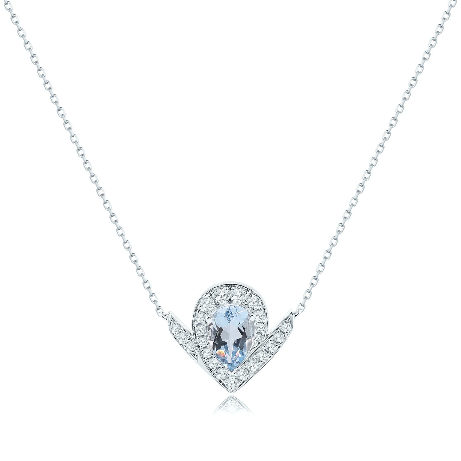 0.65 Carat TW Pear-cut Blue Aquamarine Gemstone and 0.21 Carat TW Diamond Halo Pendant Necklace in 18 White Gold