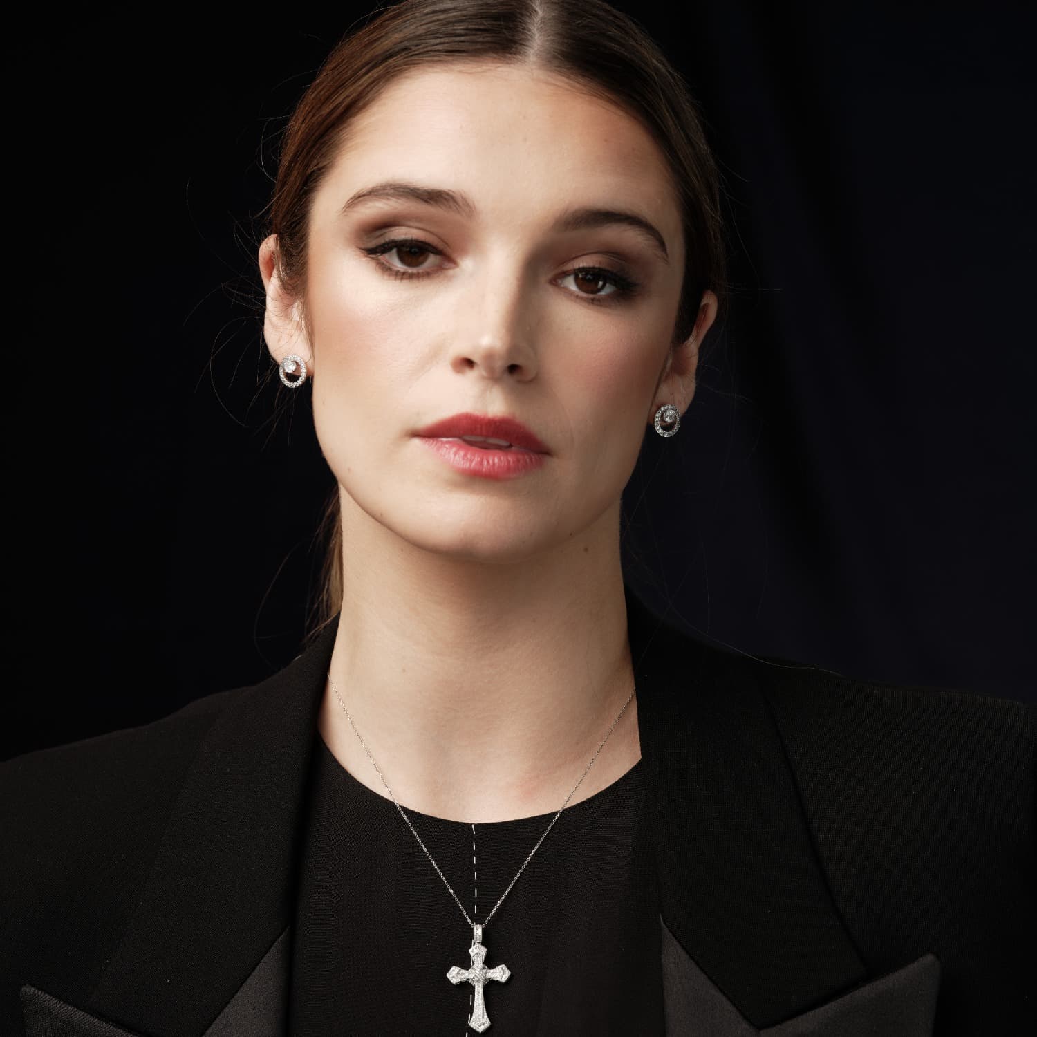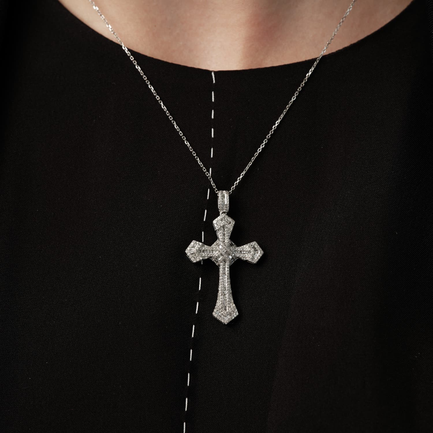 This fully – encrusted cross exudes an unparalleled allure. The meticulous setting of countless stones creates a dazzling effect, catching and reflecting light from every angle, which not only showcases the exquisite craftsmanship but also makes it a statement piece that effortlessly commands attention.