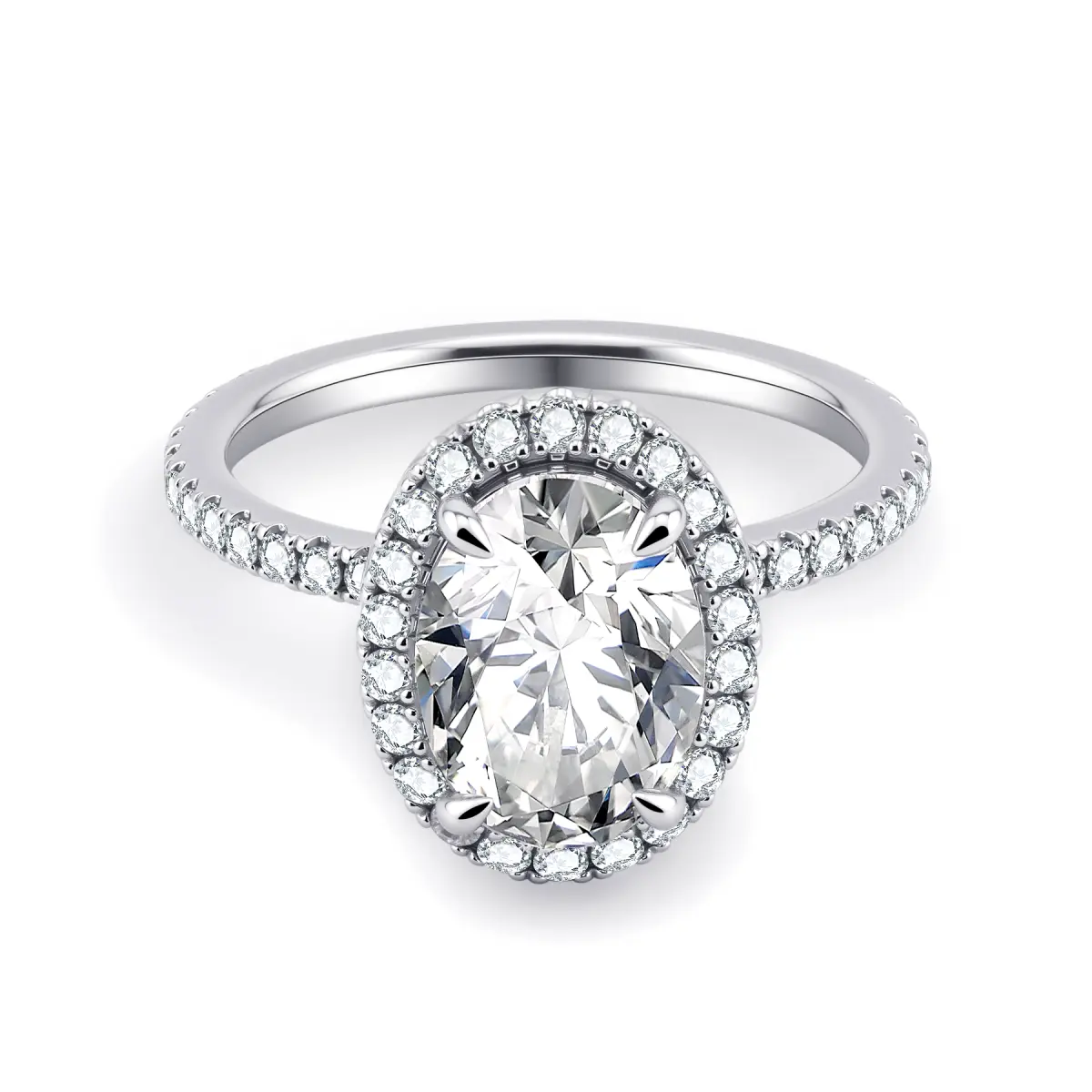Classic Oval Cut Diamond Pave Halo Engagement Ring in 14kt white gold