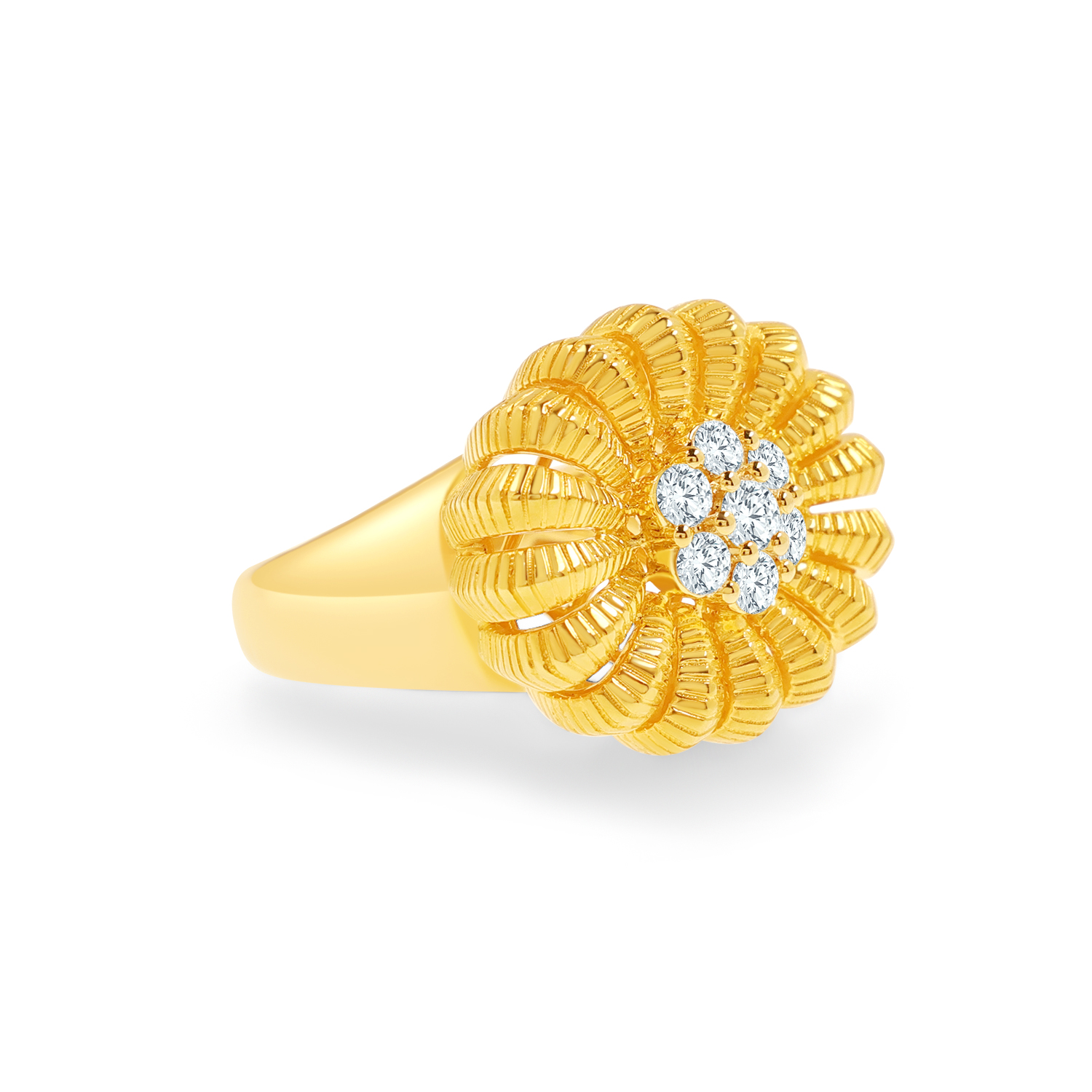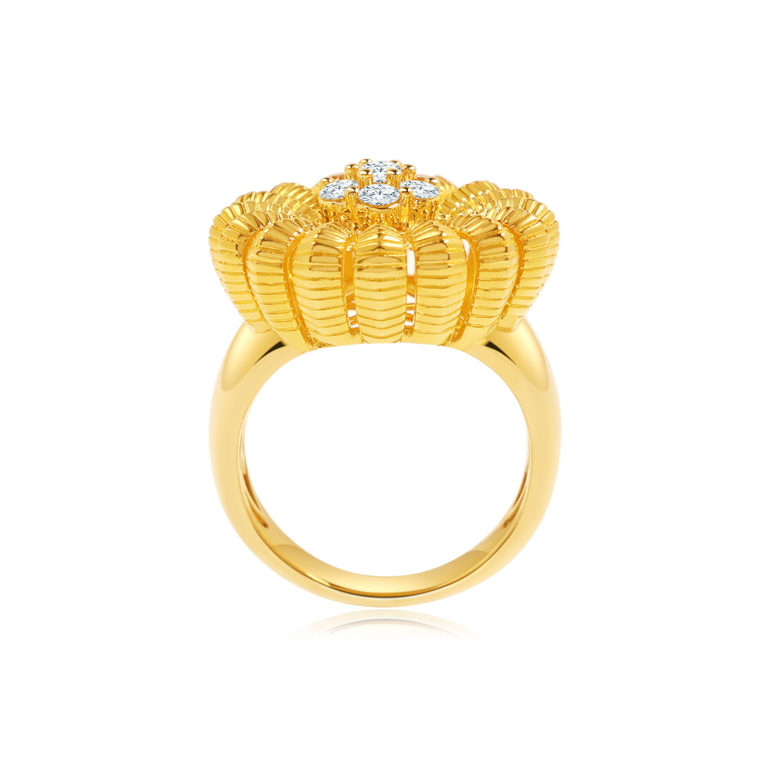 A delicate masterpiece from the Fleur Sculptée collection, this 18K gold ring transforms the essence of a blooming flower into wearable art. Every petal is meticulously sculpted in gold, capturing the rhythm of nature’s unfolding grace. At its heart, a cluster of natural diamonds (0.479ct) radiates with soft brilliance—like a dew drop caught in the first light of dawn.