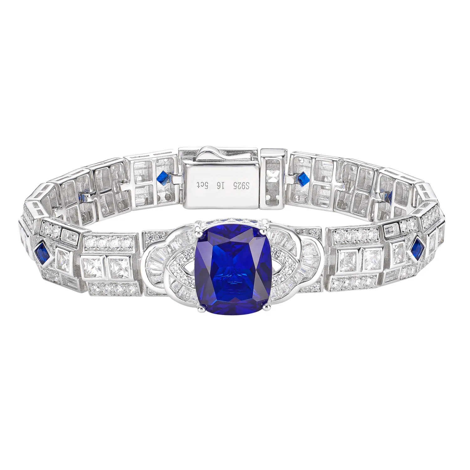 This Lyon bracelet is a striking tribute to Art Deco precision and symmetry, centered around a vivid 5-carat lab-grown blue sapphire. The bracelet’s articulated links are engineered with precision, offering both fluid movement and structural integrity. Delicate milgrain edging and fine metalwork add vintage charm, while the seamless clasp demonstrates exceptional attention to detail. This piece is not just jewelry—it is wearable architecture, combining classic artistry with modern refinement..