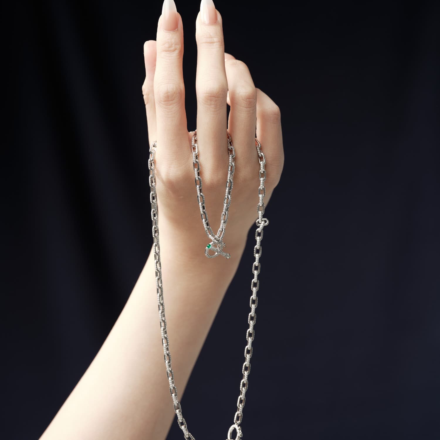 The bracelet’s design fully embraces versatility. Holding it in your hand, you’ll feel its substantial weight, a testament to its quality. It possesses a transformative allure, effortlessly elevating any outfit, be it casual or formal. It’s perfect for pairing with the OT necklace, and looks stunning when multiple bracelets are joined together. The meticulous hand – set embellishments give it a rich, luxurious jewelry – like appeal.
